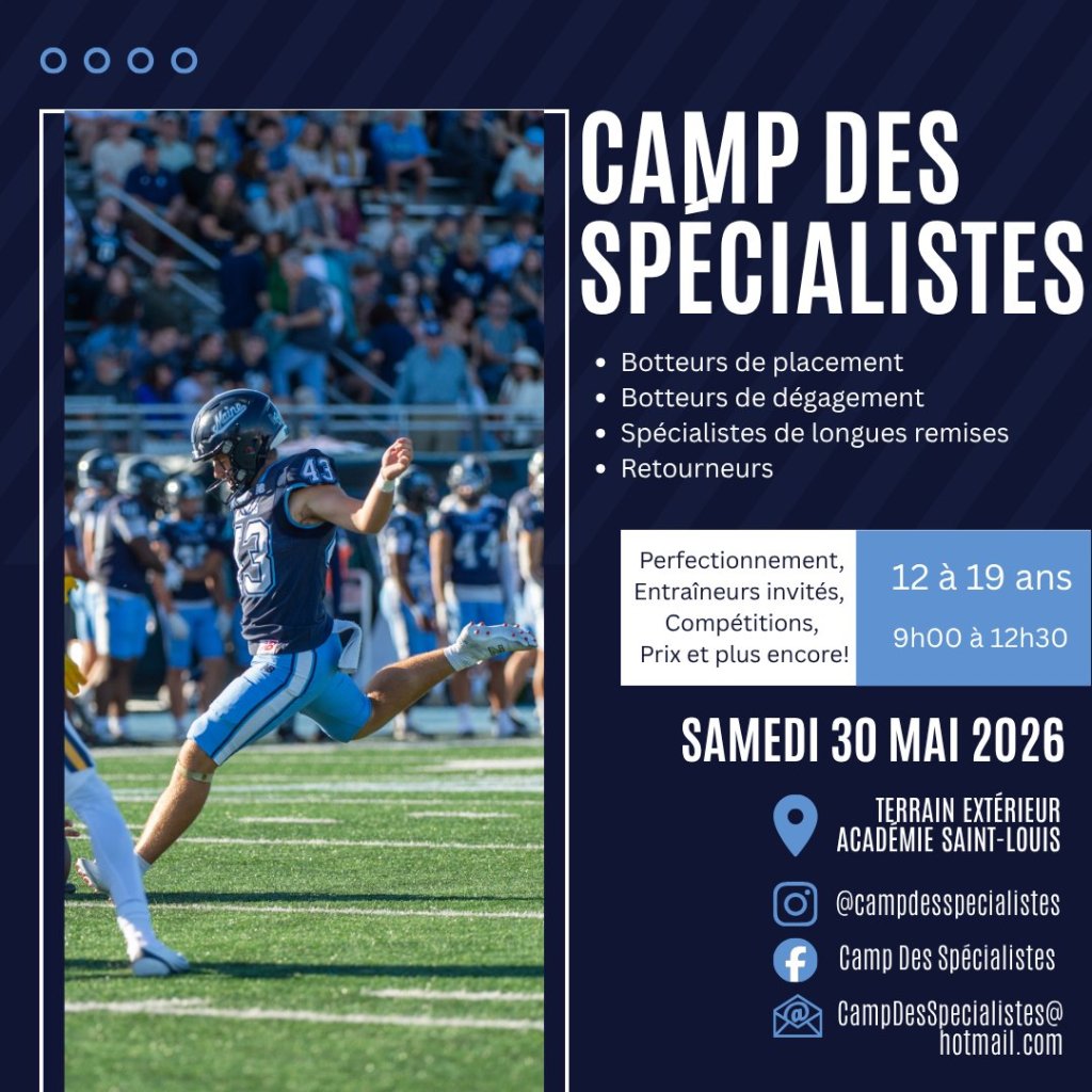 Loin de se contenter de ses exploits sur le terrain, Samuel Tremblay a entrepris de redonner à la province qui l’a vu grandir. Il lancera le 30 mai 2026, sur le terrain extérieur de l’Académie Saint-Louis à Québec, un camp personnel des spécialistes à but non lucratif. L’événement, ouvert aux jeunes de 12 à 19 ans de 9 h à 12 h 30, accueillera des botteurs de placement, des botteurs de dégagement, des spécialistes des longues remises et des retourneurs.